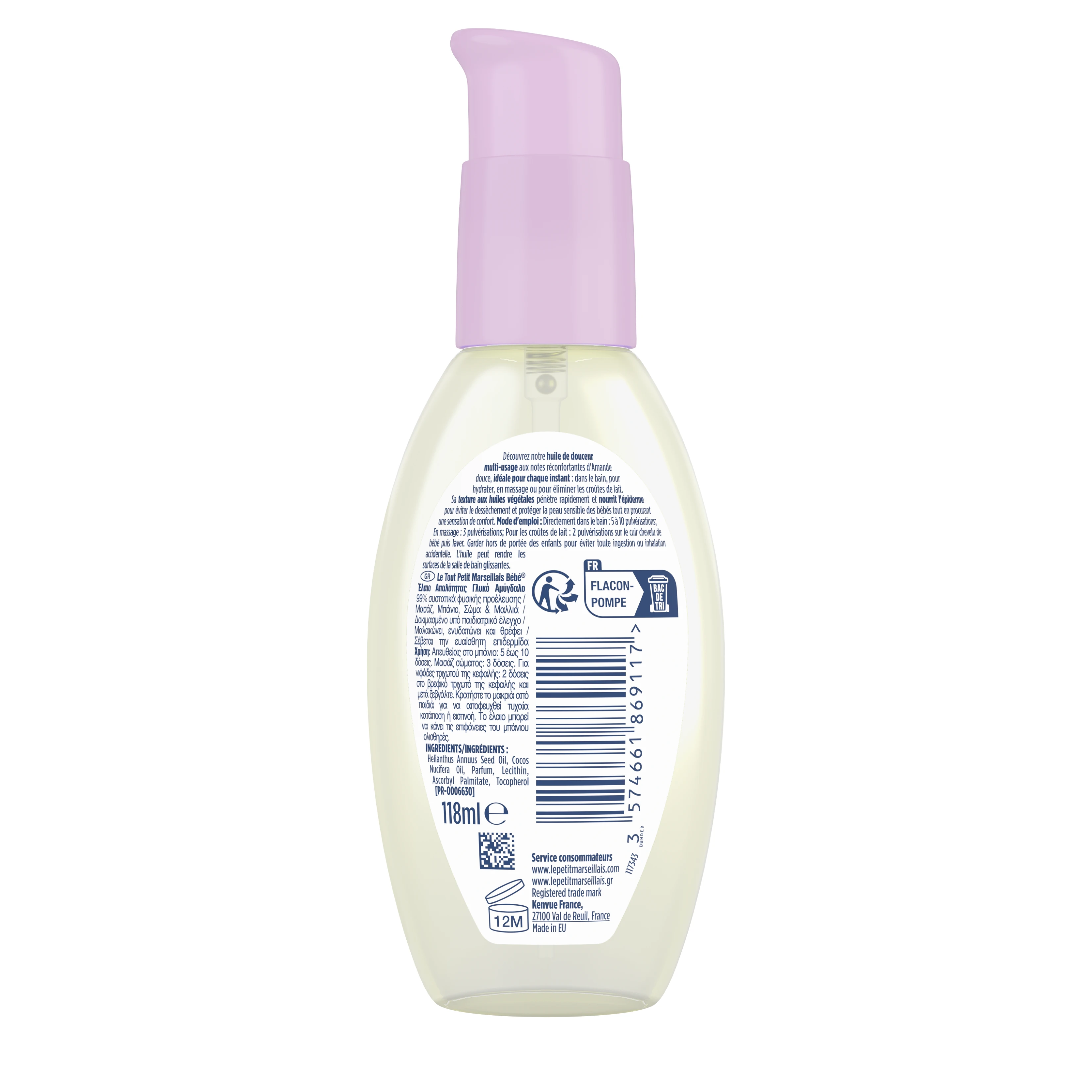 Notre Huile de Douceur multi-usage Le Tout Petit Marseillais est idéale pour chaque instant : dans le bain, pour hydrater, en massage ou pour éliminer les croûtes de lait.