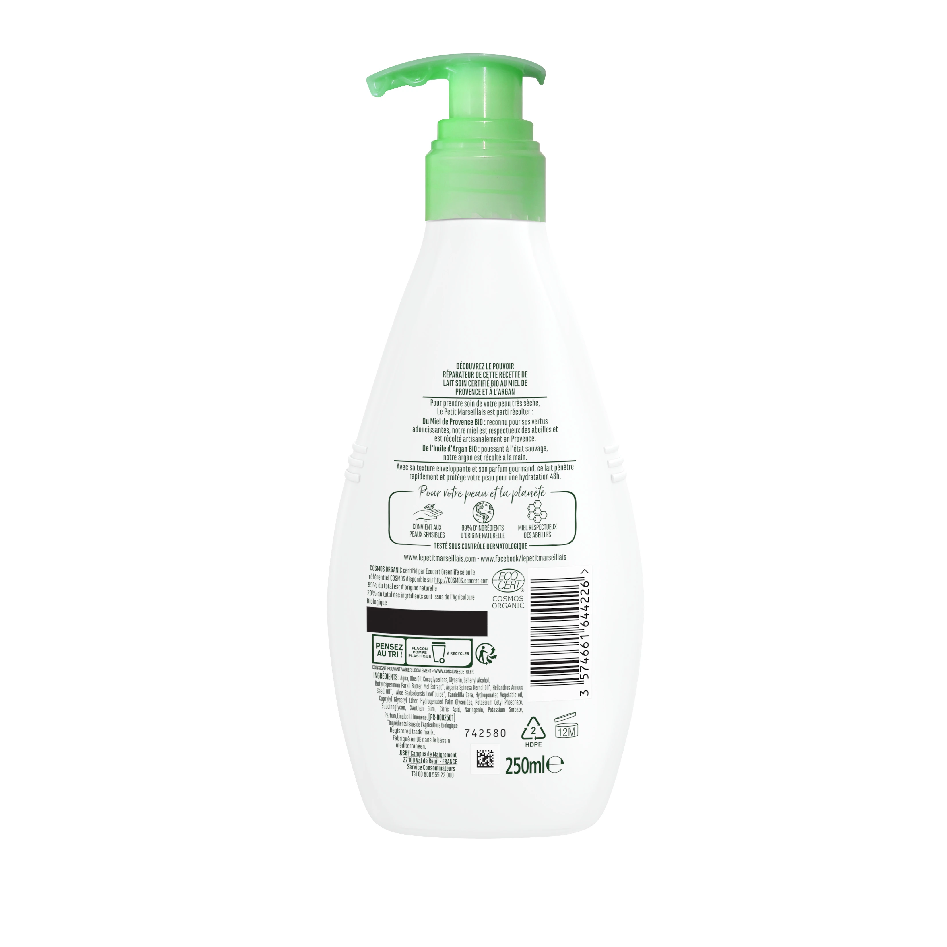 Pour prendre soin de votre peau très sèche, Le Petit Marseillais a élaboré un Lait soin Nourrissant certifié bio au Miel de Provence et à l’Argan. Avec sa texture enveloppante et son parfum gourmand, ce lait pénètre rapidement et protège votre peau pour 48h d’hydratation.