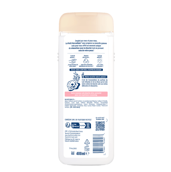 C'est de l'association du parfum du Lait d’Avoine et de la Rose qu'est née notre crème de douche soin aux notes délicates et relaxantes.