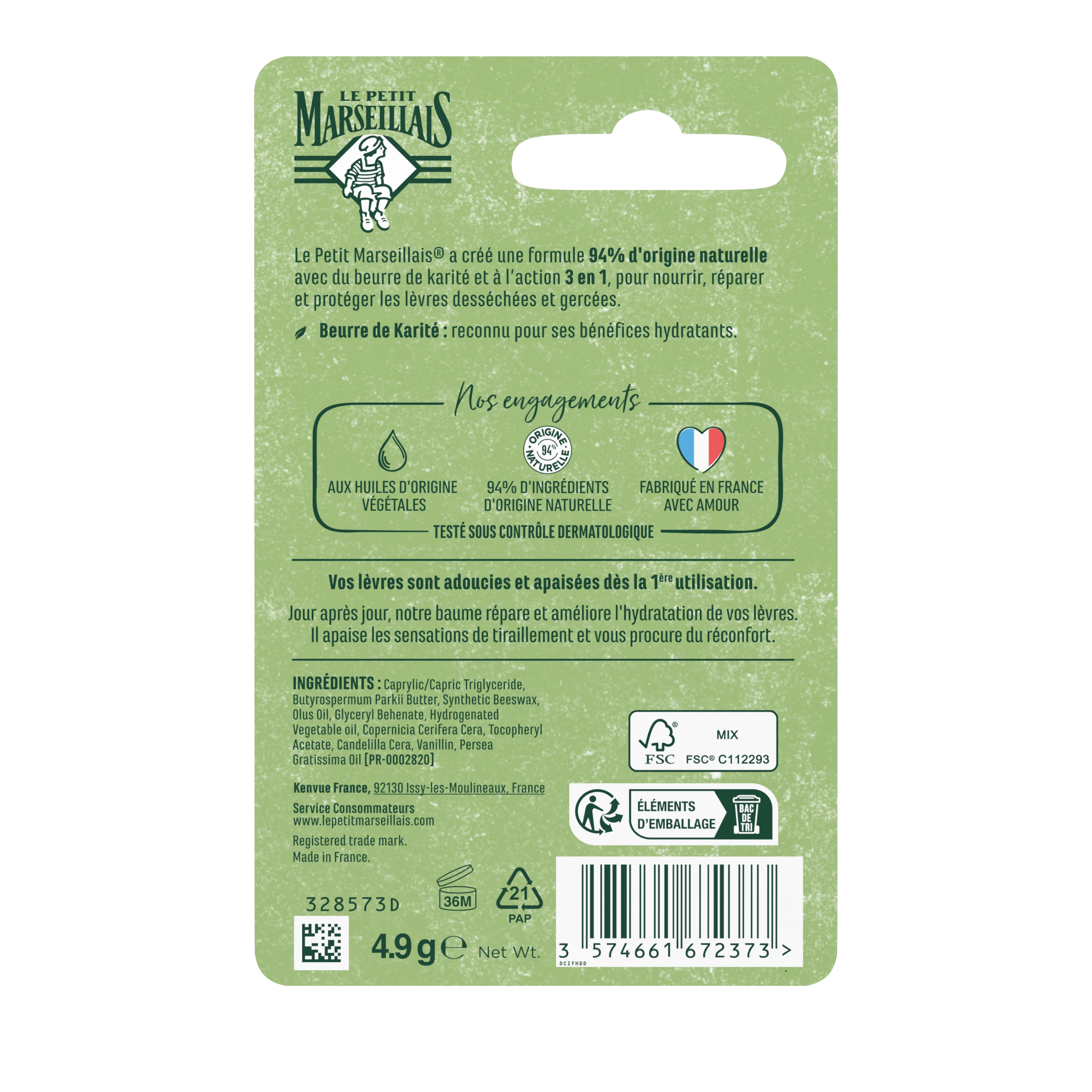 Pour prendre soin des lèvres desséchées et gercées, Le Petit Marseillais® a créé une formule à 94% d'origine naturelle avec du beurre de karité et à l’action 3 en 1, pour nourrir, réparer et protéger les lèvres desséchées et gercées.